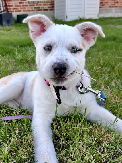 This 13-week old bundle of joy is ready to steal your heart. With her striking blue eyes and playful spirit, Wiggy is as unique as she is lovable — she’s even missing one tiny back toenail, which just adds to her charm! She is crate trained, doing great with potty training (she currently has access to a dog door and hasn't had an accident in her current foster home!), and is leash trained. She adores playing with other dogs and will keep you entertained with her goofy, joyful energy — but when playtime winds down, she’s all about cuddles and snuggling up close. Wiggy has also recently become an expert swimmer and does well entertaining herself with a ball or squeaky toys. If you're looking for a loyal companion with a heart full of love and a sparkle in her eye, Wiggy might just be your perfect match!
